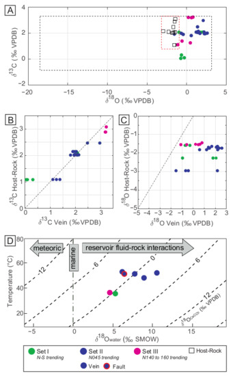- Shemesh, A.; Ron, H.; Erel, Y.; Kolodny, Y.; Nur, A. Isotopic composition of vein calcite and its fluid inclusions: Implication to paleohydrological systems, tectonic events and vein formation processes. Chem. Geol. 1992, 94, 307–314. [Google Scholar] [CrossRef]