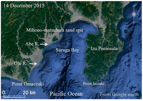 Satellite image of Suruga Bay (for location, 34°36′16.73″ N, 138°16′50.47″ E).