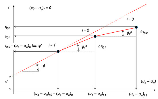 - Vilar, O.M. A simplified procedure to estimate the shear strength envelope of unsaturated soils. Can. Geotech. J. 2006, 43, 1088–1095. [Google Scholar] [CrossRef]