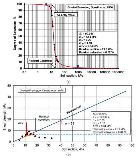 There appears to be a wide acceptance that the air-entry value (AEV), as defined by the S-SWCC, is the “start point” where the soil begins to behave as an unsaturated soil. Several of the proposed shear strength equations also attempt to use the residual suction as a control point when defining the unsaturated shear strength for practical engineering applications [24].