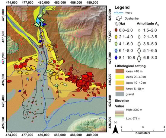 - Parolai, S.; Orunbaev, S.; Bindi, D.; Strollo, A.; Usupaev, S.; Picozzi, M.; Di Giacomo, D.; Augliera, P.; D’Alema, E.; Milkereit, C.; et al. Site Effects Assessment in Bishkek (Kyrgyzstan) Using Earthquake and Noise Recording Data. Bull. Seismol. Soc. Am. 2010, 100, 3068–3082. [Google Scholar] [CrossRef][Green Version]