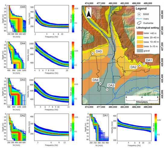 In September 2019, five MAM measurements using five seismic stations, which were installed in various parts of Dushanbe (see locations in Figure 9) to obtain information on local shear-wave velocity patterns.