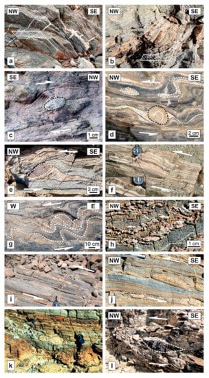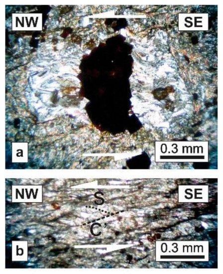- Passchier, C.W.; Trouw, R.A. Microtectonics; Springer Science and Business Media: Berlin/Heidelberg, Germany, 2005. [Google Scholar]
