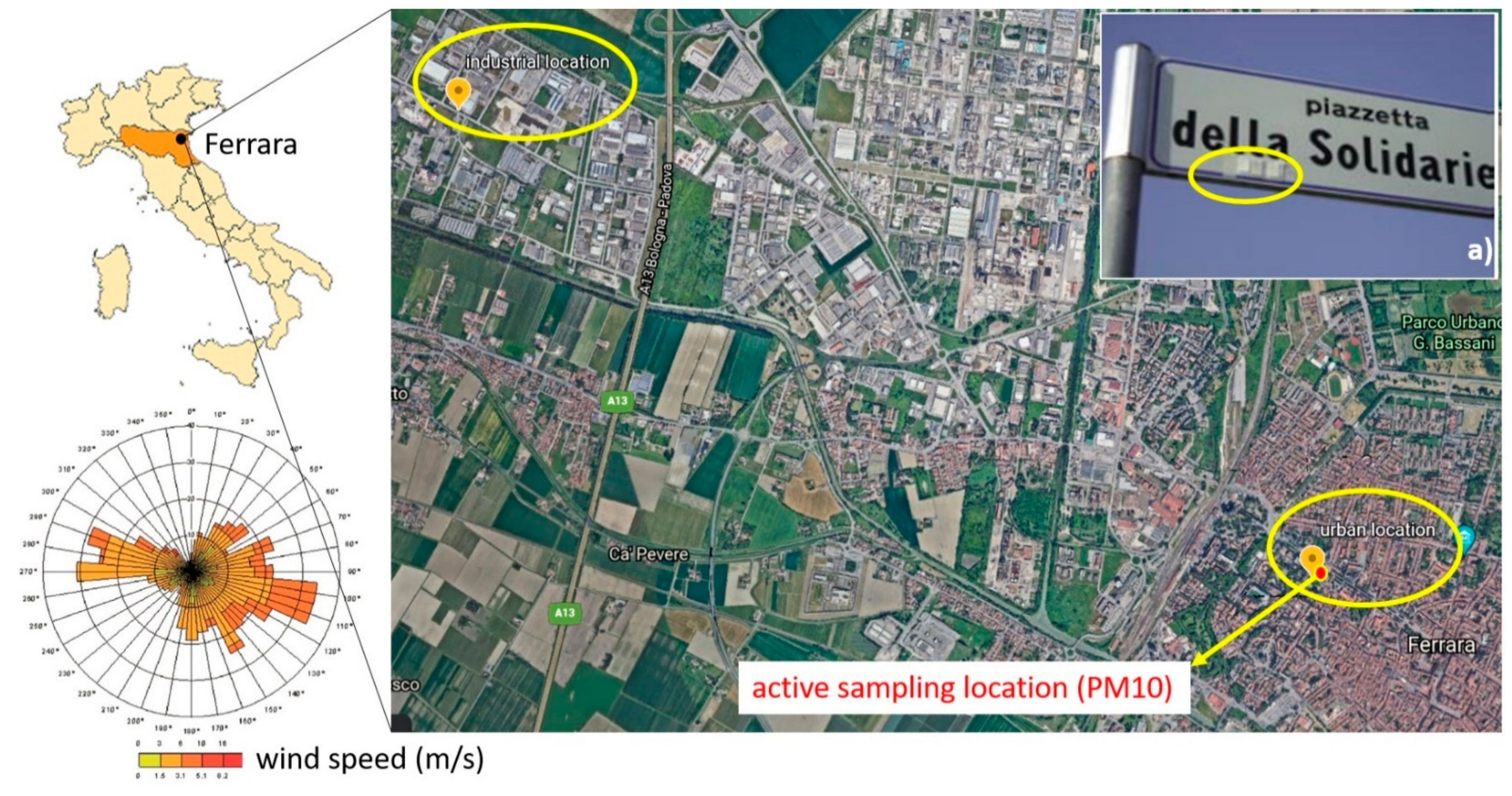 - Arpae Emilia Romagna. Rapporto Sulla Qualità dell’Aria del Comune di Ferrara—Dati 2006; Arpae Emilia Romagna: Bologna, Italy, 2006. [Google Scholar]