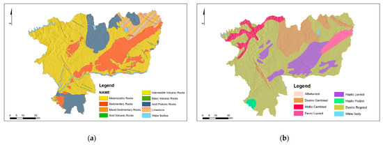 The study area is in the center of the Portuguese interior, close to the Spanish border, and belongs to the district, Castelo Branco (Figure 1a). This area largely overlaps with the area of Naturtejo UNESCO Global Geopark, created in 2006, an area of outstanding geological heritage that includes 176 geosites, 9 of which have hydrogeological significance, such as springs, hot springs, fountains, or medicinal water sources [13]. Geographically located within the Central Iberian Zone of the Iberian Massif, it lies at the junction between the Central Cordillera (to the north) and the Alentejo peneplain (to the south).