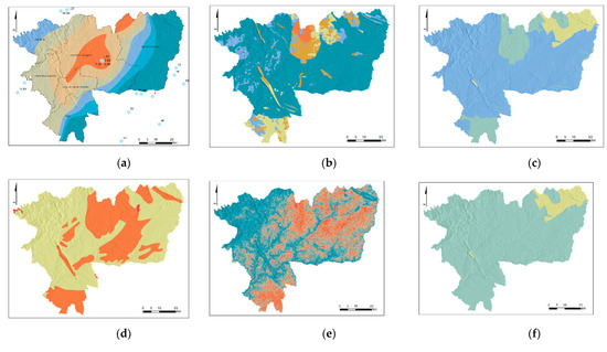 It is worth stressing that the predominant lithology corresponds to metamorphic rocks and mixed sedimentary rocks (in the global lithological map). Concerning soils, the most common are the dystric regosol, haplic aluvisol, and dystric cambisol (in the FAO harmonized soil map). Finally, the map representing the slope classes was computed using the elevation, driven by the SRTM elevation map. The computation was performed in degrees, in the Spatial Analyst tool. The land-use map aggregates the characteristics of the land use, namely agricultural, agro–forest, and forest (Figure 2).