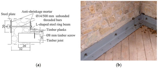 - Nunes, M.; Bento, R.; Lopes, M. In-plane stiffening and strengthening of timber floors for the improvement of seismic behaviour of URM buildings. Int. J. Mason. Res. Innov. 2020, 5, 85. [Google Scholar] [CrossRef]