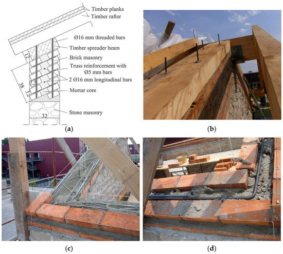 - Borri, A.; Castori, G.; Grazini, A. Retrofitting of masonry building with reinforced masonry ring-beam. Constr. Build. Mater. 2009, 23, 1892–1901. [Google Scholar] [CrossRef]