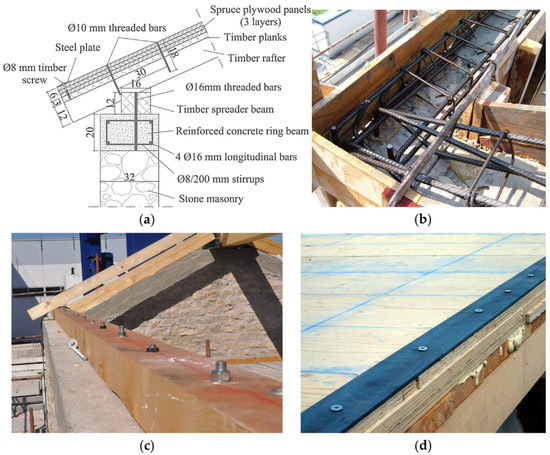 - Moreira, S.; Ramos, L.F.; Oliveira, D.V.; Lourenco, P. Design Parameters for Seismically Retrofitted Masonry-To-Timber Connections: Injection Anchors. Int. J. Arch. Herit. 2015, 10, 217–234. [Google Scholar] [CrossRef]