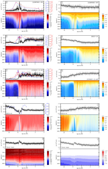 Figure 4f–i shows the decomposition of the vertical velocity w into and at core sites A–D during the past 22,000 years. It is evident that changes in the vertical extension of local upwelling at four sites are determined primarily by . Furthermore, the change of is associated with the vertical shear of the meridional flow and therefore, the zonal density gradient, according to the thermal wind relationship. Since the meridional flow is approximately geostrophic in places away from the Ekman layer and ocean bottom, the thermal wind relationship can be written as follows: