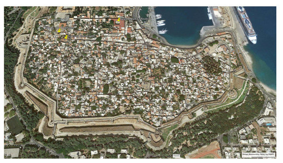 - Dellas, G.; Vlysides, S.; Stefanis, A. The Restoration of Suleiman Mosque in the Medieval Town of Rhodes; University Studio Press: Thessaloniki, Greece, 2009. (In Greek) [Google Scholar]