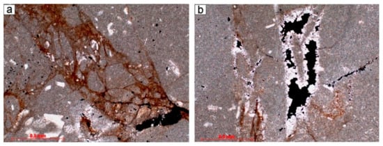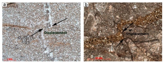 Potentially effective gas storage may be found in the microporosity space that is confined to cataclastic zones in the basement rocks []. The evidence of the bituminous filling of such zones in sedimentary rocks is indirect proof of the presence of microporosity.
