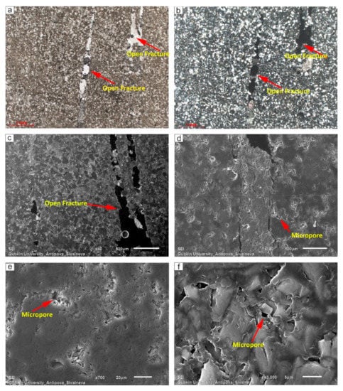 A scanning electron microscope (JEOL 6610, Japan) was used to confirm the presence of microporosity in the cataclase zones.