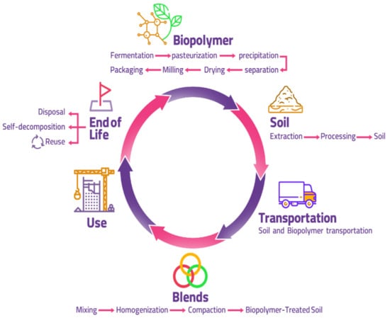 Life-cycle process of a xanthan treated soil.