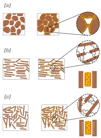 The way that a biopolymer interacts with different kinds of soils has always been considered as an important factor because microstructural study leads to a better understanding of the biopolymer-treated soil behavior. Based on the soil type, the adhesion mechanism of biopolymers is different from one soil to another. Figure 3 shows the schematic form of biopolymer-soil interaction.