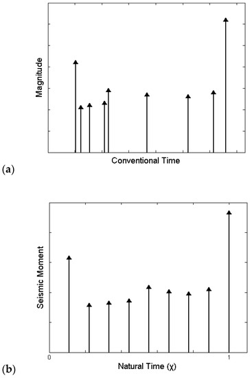 - Sarlis, N.; Skordas, E.; Varotsos, P. Nonextensivity and natural time: The case of seismicity. Phys. Rev. E 2010, 82, 21110. [Google Scholar] [CrossRef] [Green Version]