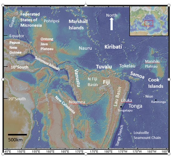 3.1. Geodynamic and Geographical Setting of the Pacific Islands Region
