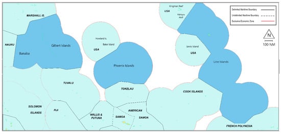 There are numerous island types present in the Pacific including atolls, reef islands, volcanic islands, mountainous islands, disparate archipelagos, and limestone islands []. Within this diversity of insular features, certain Pacific Island States, notably those fully or predominantly comprised of low-elevation atoll and reef island features are potentially especially vulnerable to sea level rise. This poses the risk that substantial parts of low-lying Pacific Island States could potentially become submerged which, in turn, means there is a consequent threat of the retreat in the location of baselines and thus a significant reduction in the spatial extent of marine areas subject to national jurisdiction [] (pp. 141–165). The article will review and evaluate the Pacific Island States coastlines with a view to categorizing their vulnerability to sea level rise and relate correlate this with their baseline and maritime claims as well as the status of their agreed and undelimited maritime boundaries with neighboring states. Multiple distinct scenarios involving agreed and unresolved maritime boundaries between Pacific States with analogous or differing levels of vulnerability are identified and illustrated through representative examples.