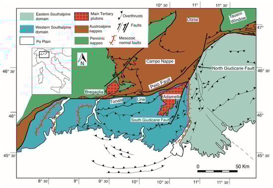 - Doglioni, C.; Bosellini, A. Eoalpine and mesoalpine tectonics of the Southern Alps. Geol. Rund. 1987, 76, 735–754. [Google Scholar] [CrossRef]