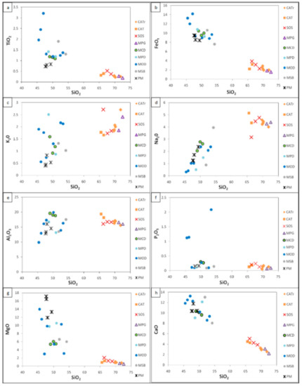 Major element compositions of Corno Alto–M. Ospedale samples and Re di Castello Parental Melts (PM) after [16,23,25,31]. Samples marked by * after Macera et al. [22].