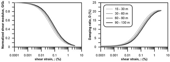 - Darendeli, D.M. Development of a New Family of Normalized Modulus Reduction and Material Damping Curves; The University of Texas at Austin: Austin, TX, USA, 2001. [Google Scholar]