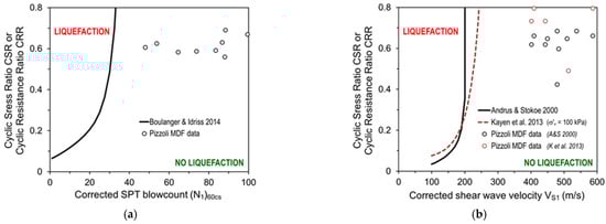 - Andrus, R.D.; Stokoe, K.H., II. Liquefaction resistance of soils from shear-wave velocity. J. Geotech. Geoenvironmental Eng. 2000, 126, 1015–1025. [Google Scholar] [CrossRef]