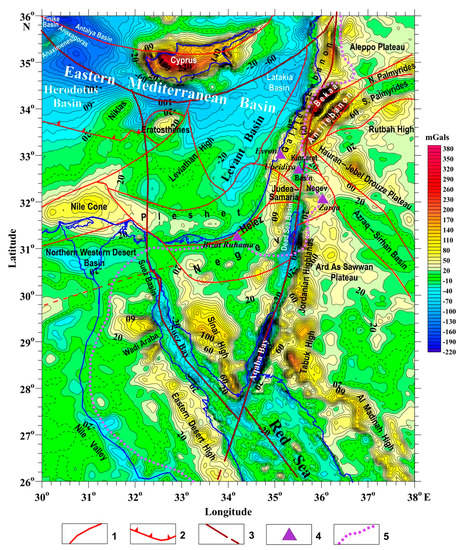 - Eppelbaum, L.; Katz, Y.; Klokocnik, J.; Kostelecký, J.; Zheludev, V.; Ben-Avraham, Z. Tectonic insights into the Arabian-African region inferred from a comprehensive examination of satellite gravity big data. Glob. Planet. Chang. 2018, 171, 65–87. [Google Scholar] [CrossRef]