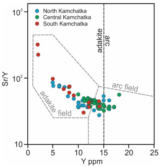 - Hochstaedter, A.G.; Kepezhinskas, P.K.; Defant, M.J.; Drummond, M.S.; Bellon, H. On the tectonic significance of arc volcanism in northern Kamchatka. J. Geol. 1994, 102, 639–654. [Google Scholar] [CrossRef]