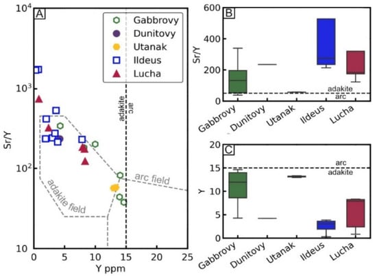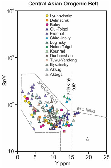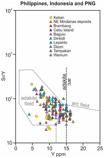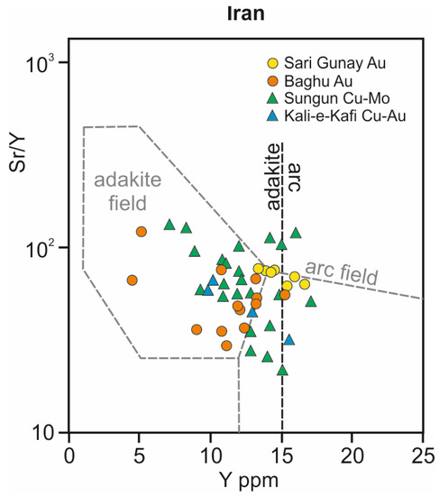 - Richards, J. High Sr/Y arc magmas and porphyry Cu ± Mo ± Au deposits: Just add water. Econ. Geol. 2011, 106, 1075–1081. [Google Scholar] [CrossRef]