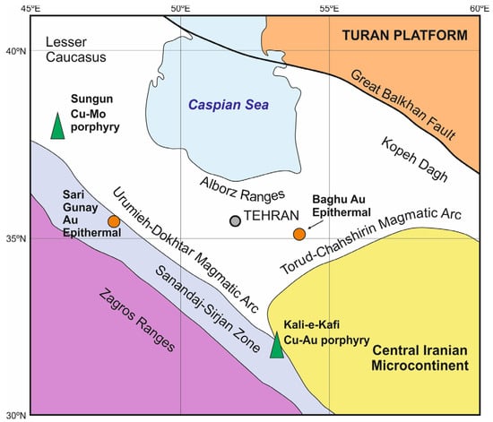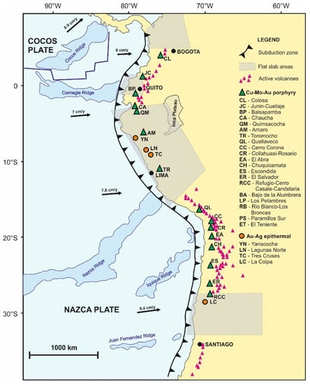 - Sillitoe, R.H. A plate tectonic model for the origin of porphyry copper deposits. Econ. Geol. 1972, 67, 184–197. [Google Scholar] [CrossRef]
