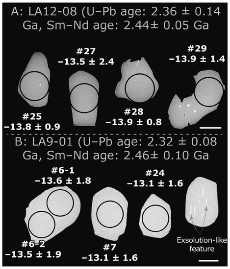 - McFarlane, C.R.M.; McCulloch, M.T. Coupling of in-situ Sm–Nd systematics and U–Pb dating of monazite and allanite with applications to crustal evolution studies. Chem. Geol. 2007, 245, 45–60. [Google Scholar] [CrossRef]
