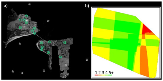 22] technique. This followed the same initial processing, point cloud, mesh, DSM and orthomosaic configurations used before. The georeferenced model used a total of 15 GCPs spread through the model (