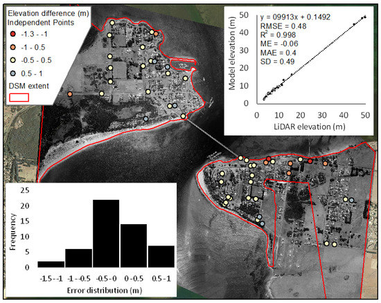 A total of 51 independent LiDAR points were used in the accuracy assessments of the 1977 DSM [