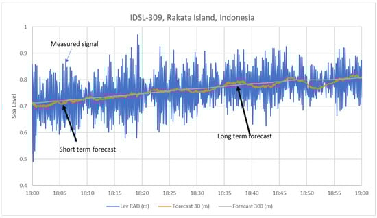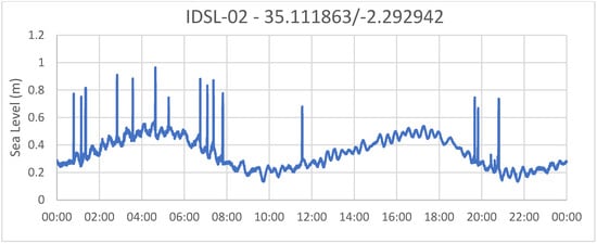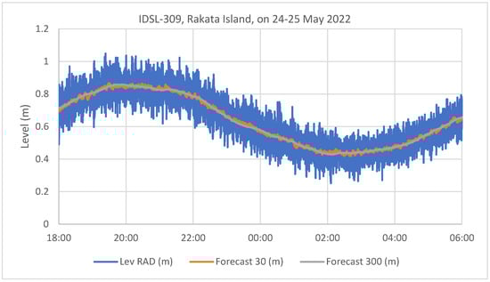 An example from a device that was recently installed in Rakata Island, Indonesia, for the period between 24 May 2022 18:00 and 25 May 2022 06:00 during a tide cycle is demonstrated in Figure 1.