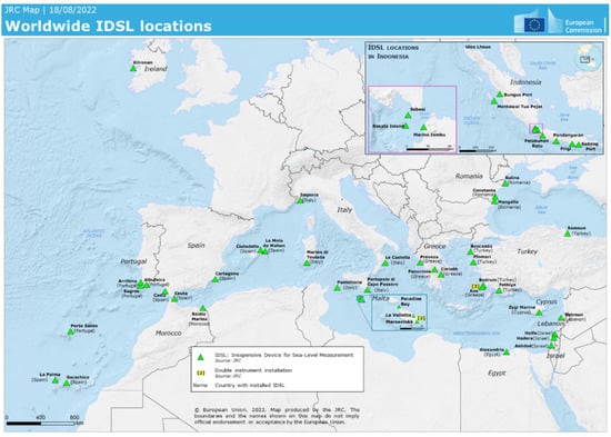 - Annunziato, A. The Inexpensive Device for Sea Level Measurements. J. Tsunami Soc. Int. 2015, 34, 199–211. Available online: https://webcritech.jrc.ec.europa.eu/TAD_server/Data/Documents/IDSL%20Description.pdf (accessed on 5 September 2022).