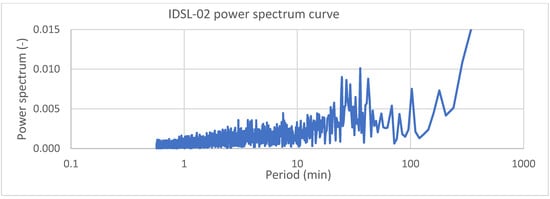 The level is shown in Figure 5; the signal power spectrum analysis (Figure 6) revealed that this marina is characterized by a small period between 26 and 35 min oscillations above the normal astronomical tide.