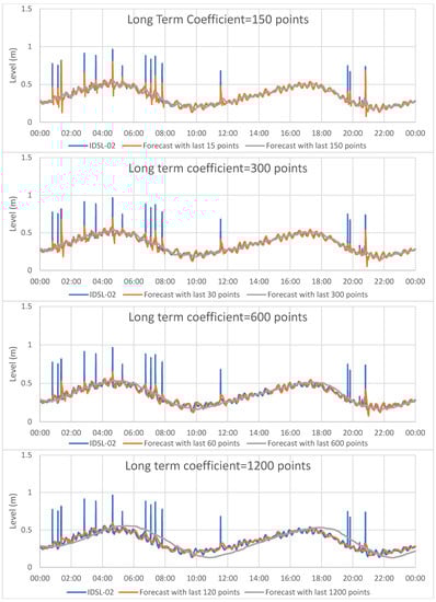 One of the first implementations of such an algorithm in real time was performed by NOAA in DART buoys [] to determine the low frequency tide by using an interpolation of the last 3 h. This threshold was used to perform a higher frequency data acquisition (one point every 15 s instead of one point every 1 h to save transmission time through satellite).