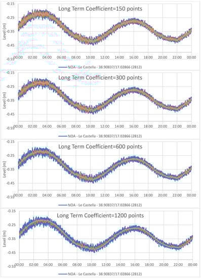 An increase in the N300 parameter (number of intervals of acquisition, 5 s) tended to better represent the average for an oscillating signal like the one recorded in Saidia Marina (Morocco). If the value of N300 is too low, the LTF will follow the curve too closely. The final value of the parameter was therefore chosen as 1200 points in order to follow the real average of the curve.