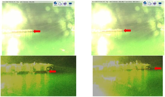 Two snapshots from the IDSL-308 (Prigi, Indonesia) webcams at 13:00:00 UTC, before the arrival of the pressure wave from the Hunga Tonga volcanic eruption at 13:14:24 UTC, as activated by the alerting algorithm. Despite the unfavourable light conditions during the night, it is still possible to note the sudden rise in sea level.