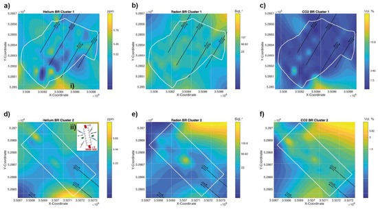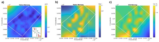 - Ciotoli, G.; Lombardi, S.; Annunziatellis, A. Geostatistical analysis of soil gas data in a high seismic intermontane basin: Fucino Plain, central Italy. J. Geophys. Res. Earth Surf. 2007, 112, B05407. [Google Scholar] [CrossRef]