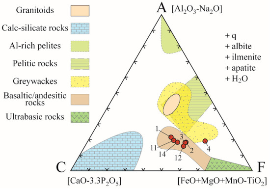 - Neelov, A.N. Petrochemical Classification of Metamorphosed Sedimentary and Volcanic Rocks; Nauka: Saint Petersburg, Russia, 1980; 100p. (In Russian) [Google Scholar]