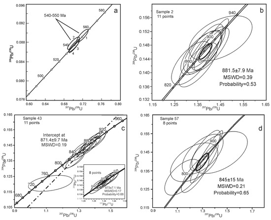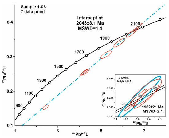 - Black, L.P.; Kamo, S.L.; Allen, C.M.; Aleinikoff, J.N.; Davis, D.W.; Korsch, R.J.; Foudoulis, C. TEMORA 1: A new zircon standard for Phanerozoic U-Pb geochronology. Chem. Geol. 2003, 200, 155–170. [Google Scholar] [CrossRef]