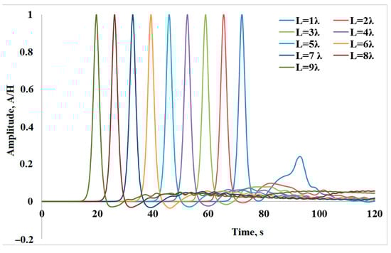The plots demonstrate that the amplitude of the reflected wave predictably grows with an increase in the width of the damping zone. Amplitude relationships between reflected and incident waves for each case are given in Table 2.