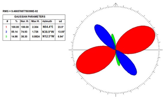 Paleostress computation by extensional fractures inversion provided a result similar to the latter paleostress event computed by fault inversion (Figure 15). Specifically, inversion of the classified systematic and non-systematic joint set (according to Figure 11C) provided a reliable solution (MAD = 10°) characterized by the minimum horizontal stress (σ3) N37°E oriented (plunging 0.3°) and the maximum horizontal stress (σ2) N53°W oriented (plunging 0.3°) with a vertical σ1.