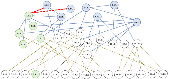 Interlinkages of SDGs to SDG 6 targets based on Requejo-Castro et al. [18] redrawn and modified by the authors. Solid blue lines indicate “First-order” (direct) linkages. Brown dotted lines indicate “Second-order” (indirect) relationships. Additional direct linkages are identified by thick dotted red lines. Blue circles represent SDG 6 targets, green circles SDG 3 targets, whereas white circles with dashed lines represent targets from all other SDGs.