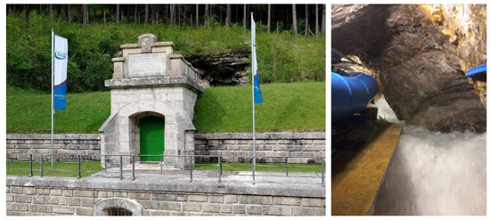 Entrance to the Kaiserbrunn spring (left) and view of the opening of the Kläfferquelle spring in the mountain (right) [21].
