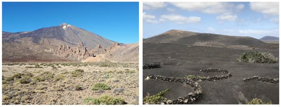 Volcanic landscapes represent very attractive sites for the population, and offer many resources to the communities that live within them (soils, materials, energy, and tourism) (Figure 1). However, the main attraction that volcanoes offer is related to volcanic heritage and geotourism. For this reason, the international journal Geosciences has published this Special Issue entitled “Geomorphology, Geoheritage, Geoparks and Geotourism in Volcanic Areas”. The main aim of this volume was to identify, characterize and evaluate the potential and the opportunities offered by volcanic geomorphology, as well as the geoheritage, geoparks and geotourism, for the societies who are living around active or non-active volcanic areas. The benefits of volcanic landscapes include different tendencies, methods, techniques and research interests regarding the volcanic geomorphology, geomorphosites/geosites, geoheritage, geoparks and geotourism in natural or urban environments.