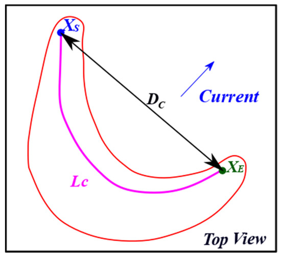 The measurements considered in the sinuosity index (3) can be observe in Figure 7.