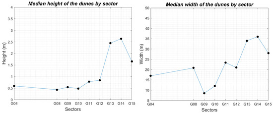 Median height and width of the dunes per sector.