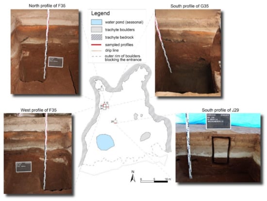 The stratigraphy of an archaeological site, ideally in an intact and undisturbed state, illustrates the occupational history and behavior of past inhabitants, as well as past environmental conditions. Often, rockshelters provide excellent sediment traps. Nevertheless, stratigraphies can be influenced by changing depositional environments and post-depositional impacts [5]. Particularly, this holds true for stratigraphies of rockshelters in tropical regions, which are often subject to changing moisture conditions [5,6]. This can complicate the identification of sedimentary sources and depositional processes at these sites.